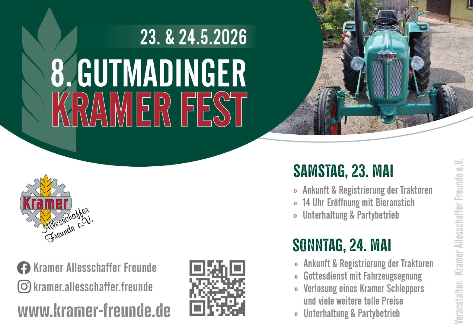 Die Nostalgie-Gruppe und der Narrenverein Halb-Olfer Orsingen laden am Sonntag, 27.09.2026 ab 10:00 Uhr recht herzlich zum traditionellen Herbstfest in der Kirnberghalle ein. Lasst euch bei frischen Schlachtplatten, alten Karossen und Schleppern sowie einem bunten Herbstmarkt verwöhnen und genießt ein paar schöne Stunden.